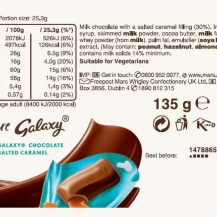 Salted Caramel Chocolate Bar 6 packs of 135g