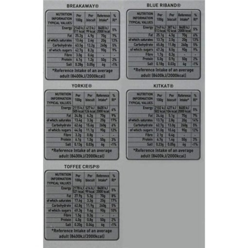 PRODUCT NAME ‎Contains an assortment biscuits including BREAKAWAY, BLUE RIBAND, TOFFEE CRISP, KITKAT and YORKIE.