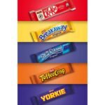 A display-ready presentation box featuring five delicious chocolate biscuits + Includes an assortment of KITKAT, BREAKAWAY, BLUE RIBAND, TOFFEE CRISP and YORKIE BISCUIT chocolate biscuit bars + Suitable for use at any catering or office event + Free from artificial colours, flavours, preservatives or hydrogenated fats and Suitable for vegetarians.