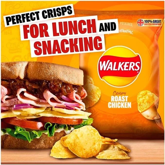 100% Great British Potatoes Cooked with Sunseed oil, naturally lower in saturates, No Artificial colours or preservatives, No MSG, Suitable for vegetarian. You look at a potato, what do you see? Probably just a potato, right? Well, in 1948 Henry Walker saw Potential. With a bite of positivity he turned his humble spuds into irresistible Walkers crisps. Since then, our crisps have been providing moments of delicious crunchiness and smiles to everyone in Britain. So, when life gives you potatoes…Make Crisps